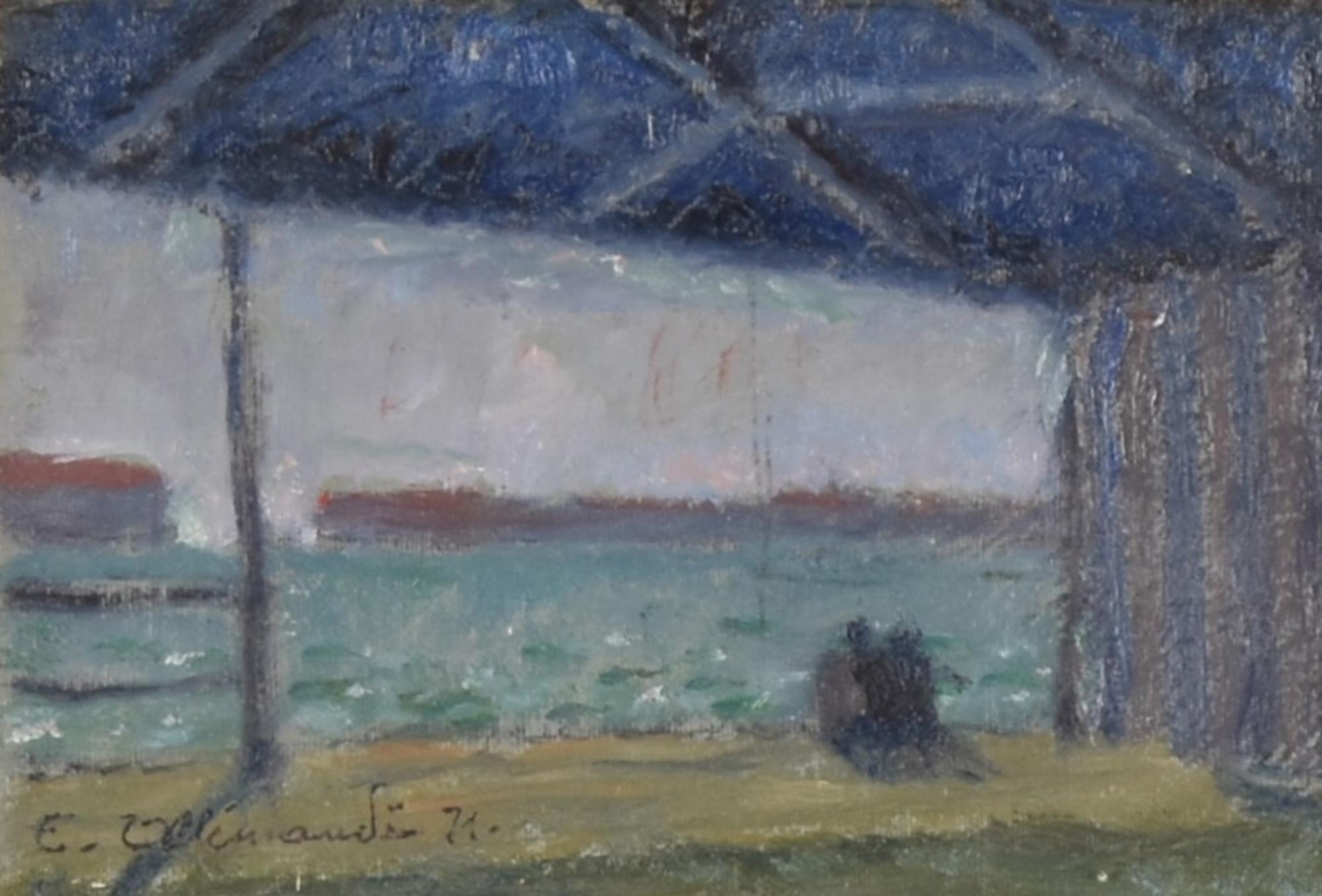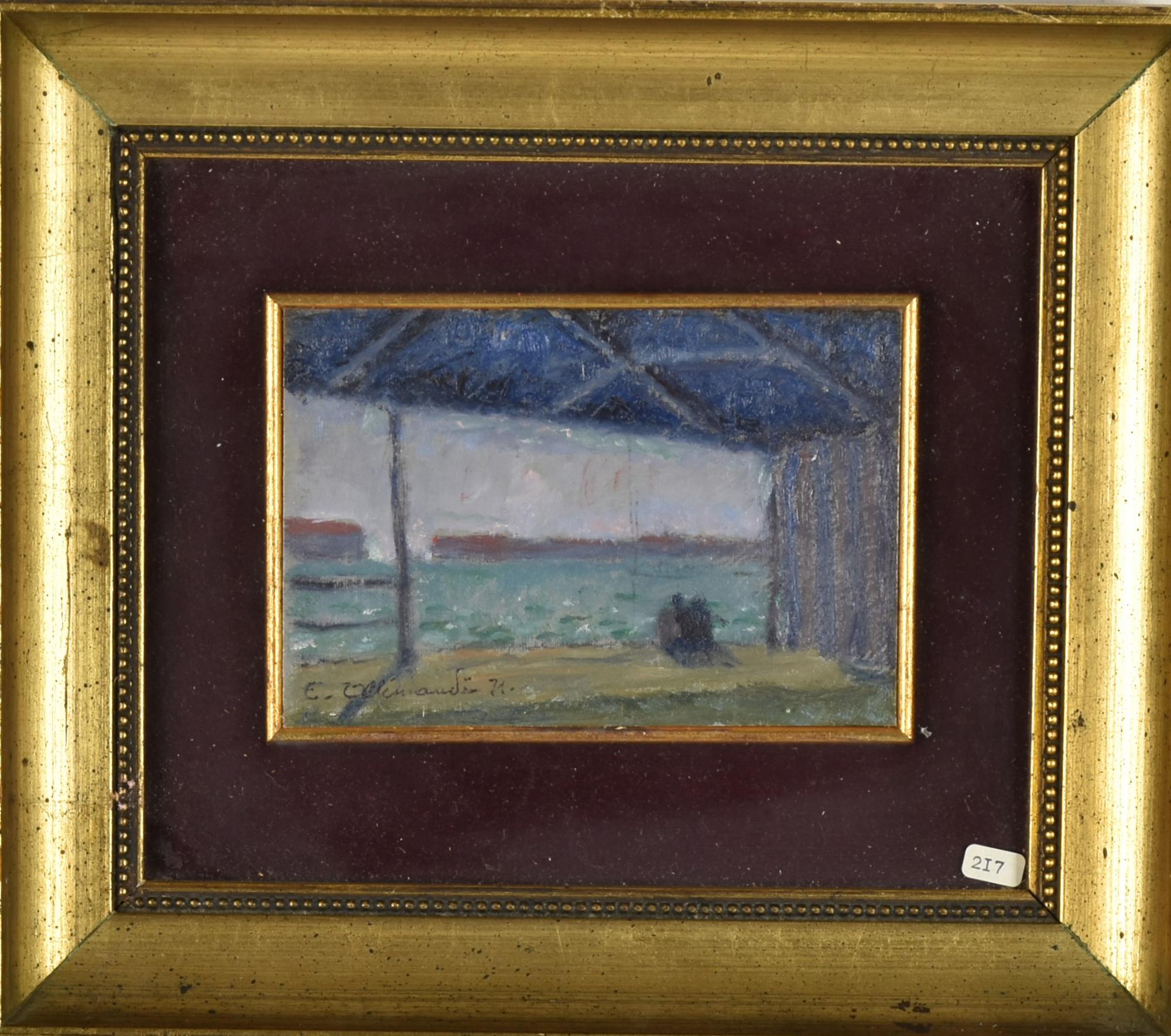 Enrico Allimandi IN RIVA AL MARE olio su cartone, cm 10x15 firma e data...