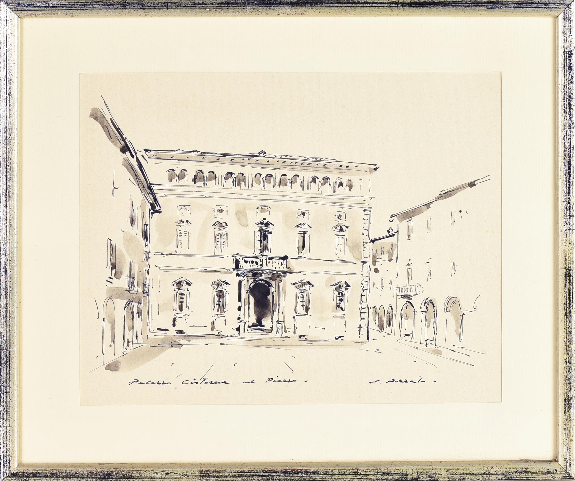 Epifanio Pozzato PALAZZO CISTERNA AL PIAZZO china acquarellata su carta, cm...