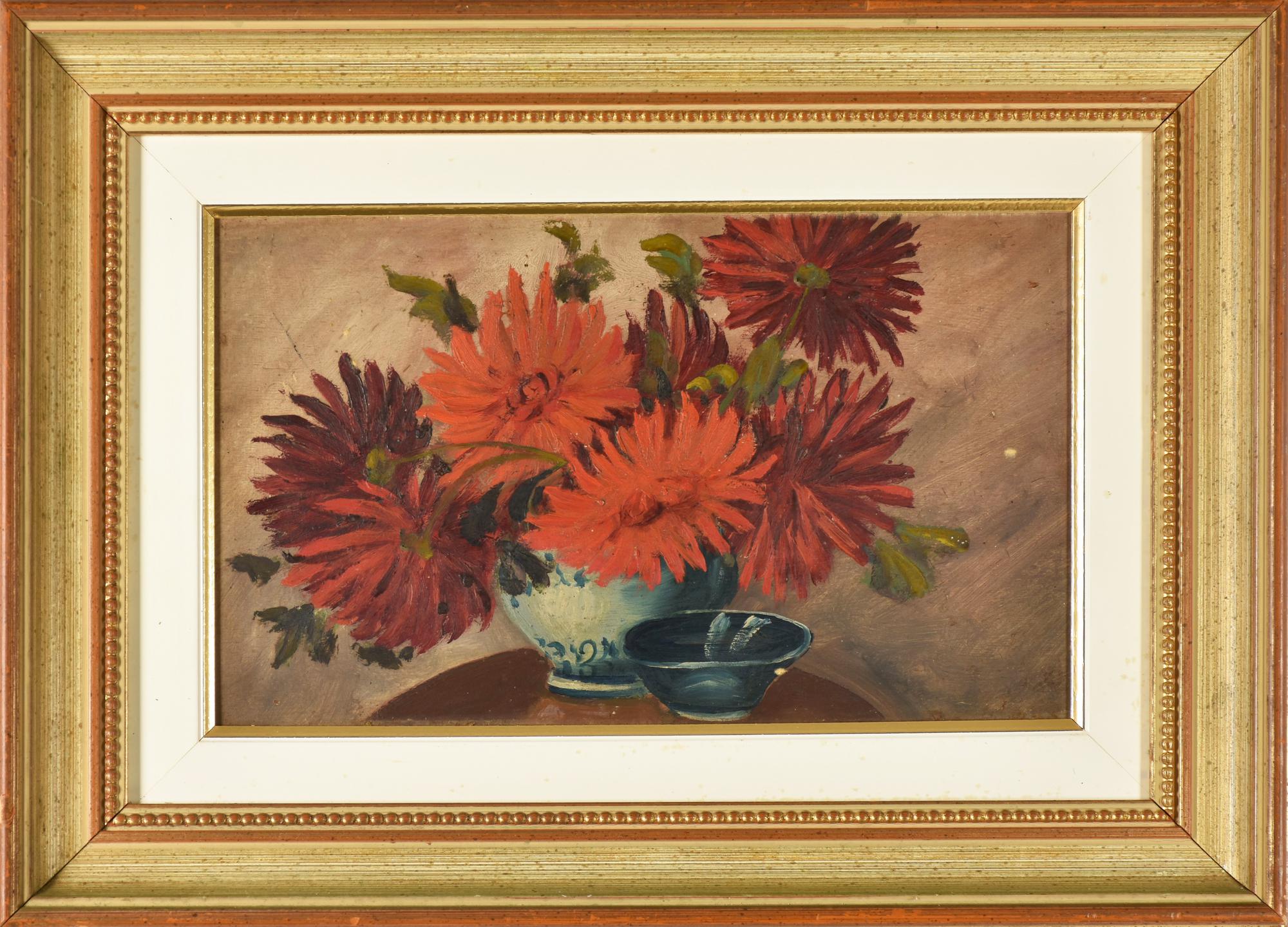 Anonimo VASO CON FIORI ROSSI olio su tavola, cm 20x33