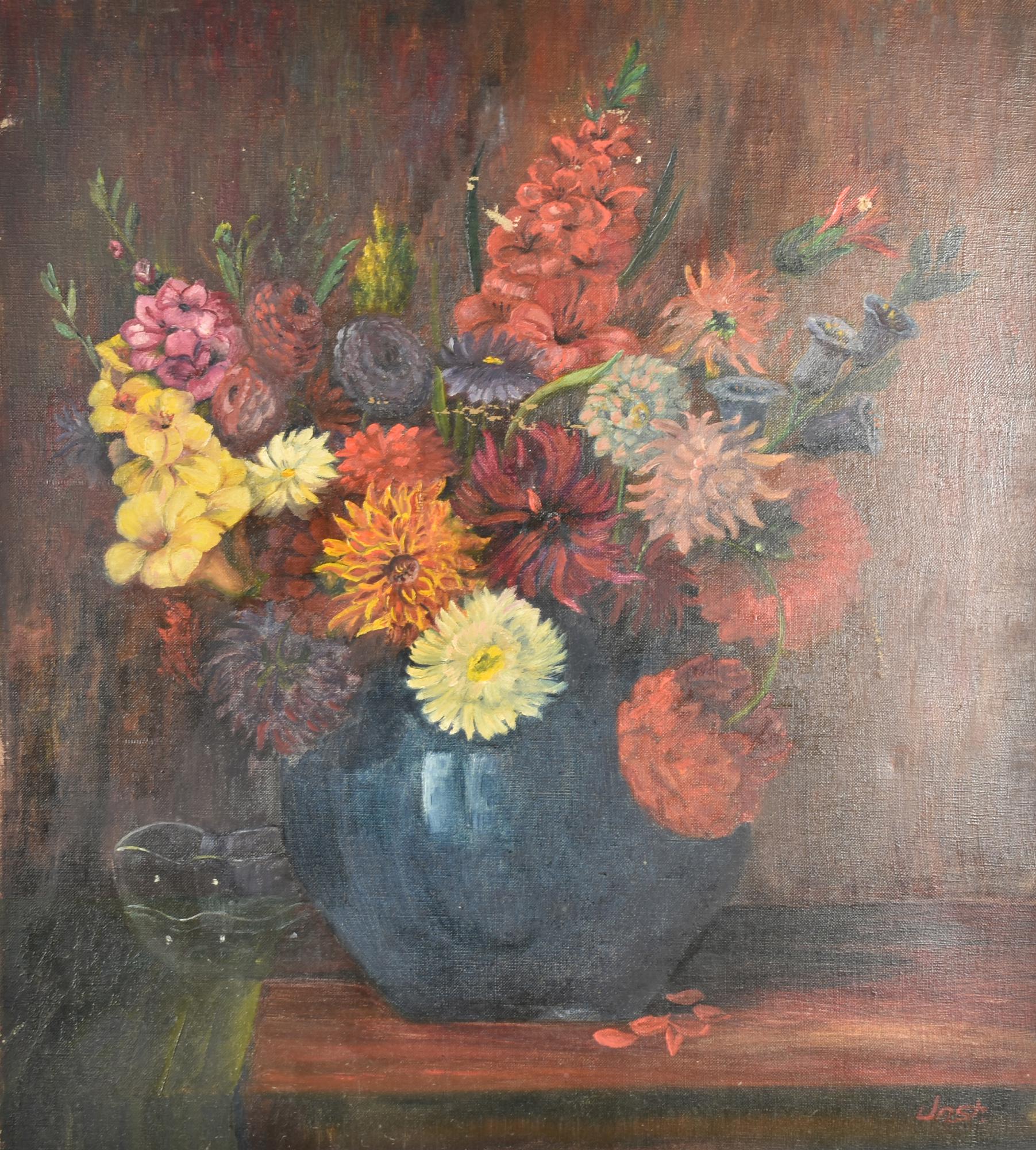 Jost VASO DI FIORI olio su tela, cm 66x59 firma L'opera presenta alcune...