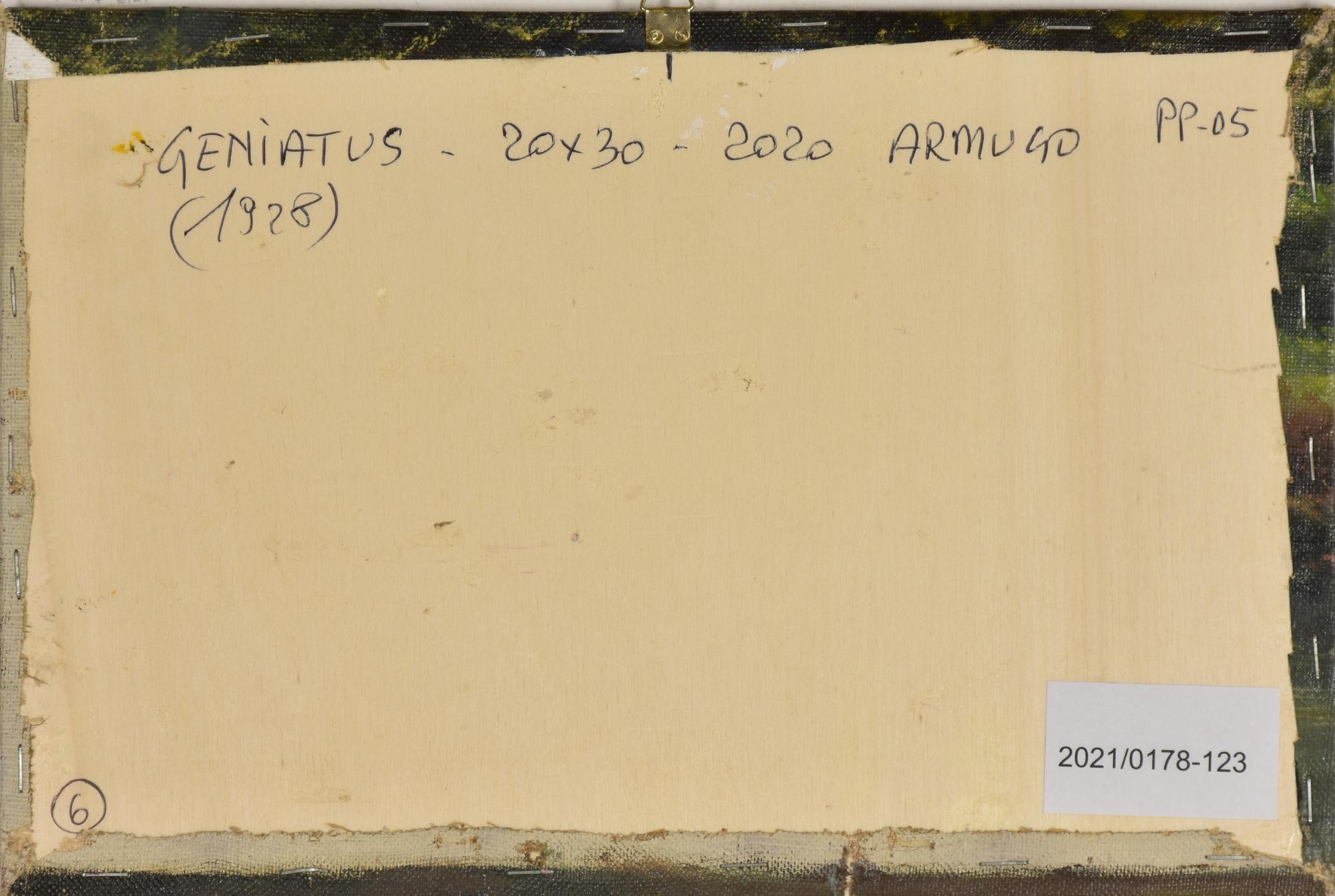 Ugo Armaroli GENIATUS 1928 olio su tela applicata su tavola, cm 20x30 firma...