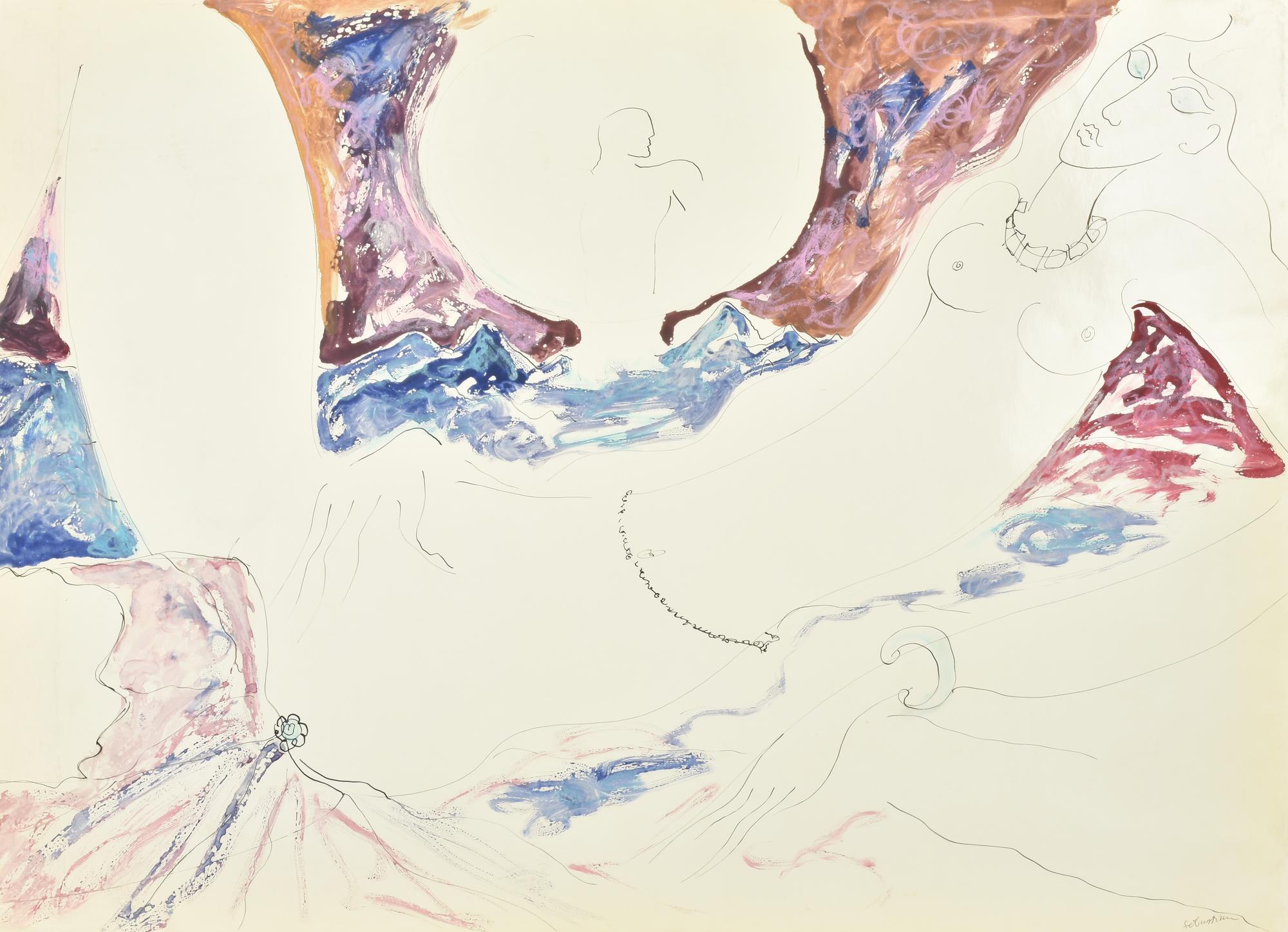 Sebastian LE VISITEUR tecnica mista su carta, cm 50x70 firma