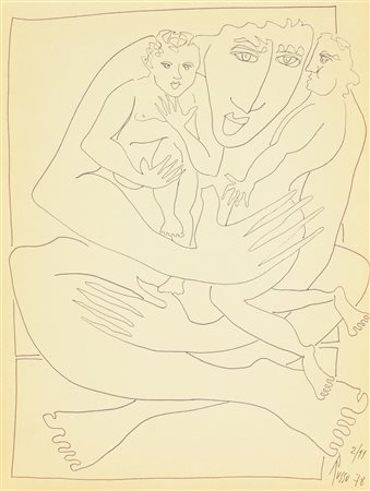 Russo L'ABBRACCIO pennarello su carta, cm 40x30 firma e data eseguito nel 1978