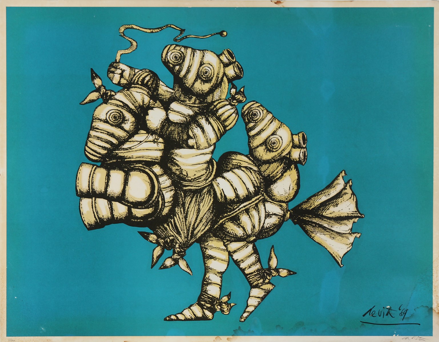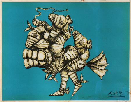 DE VITA LUCIANO (1929 - 1992) Senza titolo. Serigrafia. Cm 90,00 x 70,00. Misure lastra: 67x87 cm.Tir. 7/100 e firma in basso a matita. Firma serigrafata in basso a destra. Leggere macchie di umidià.