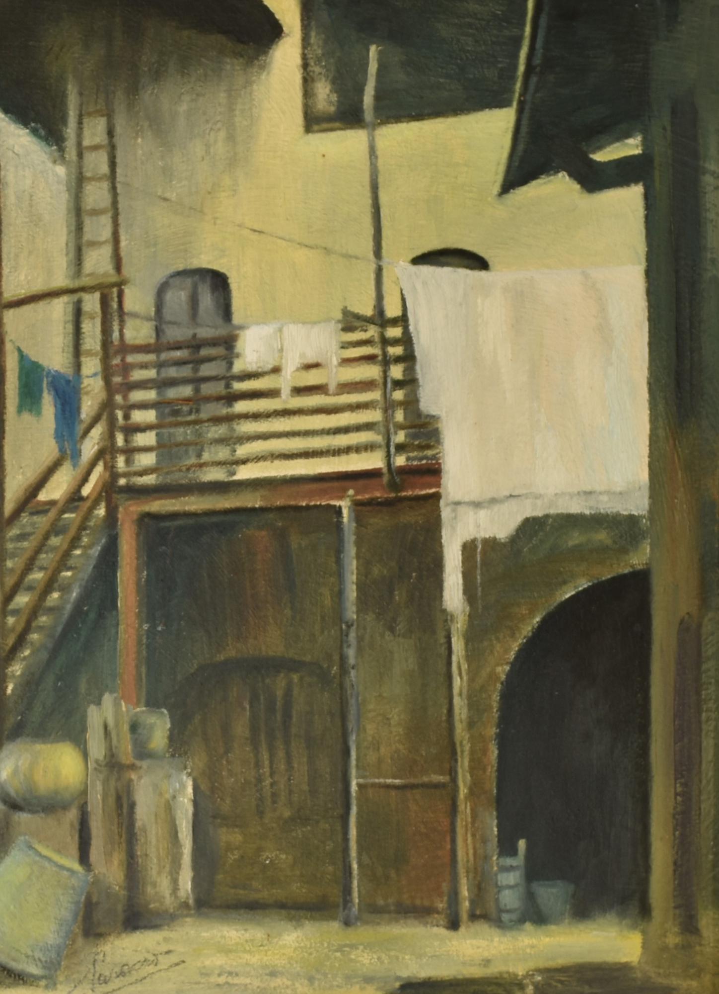 Ignoto INTERNO DI AIA olio su cartone, cm 37x27 firma