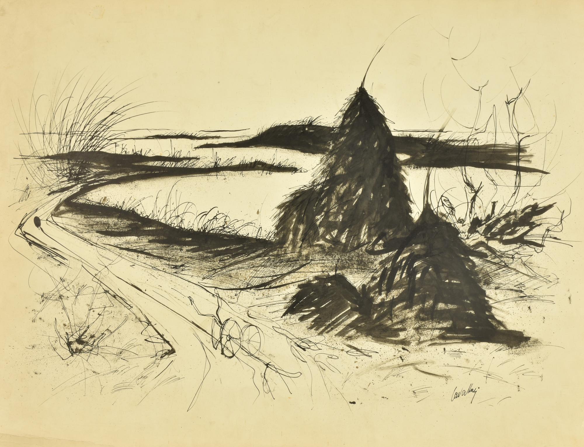 Gaetano Cavallari PAESAGGIO tecnica mista su carta, cm 50x65 firma sul retro:...