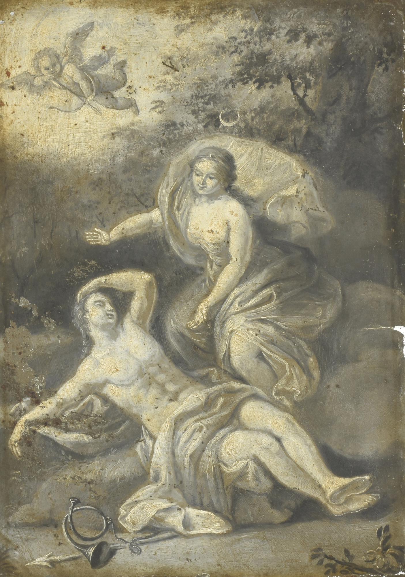 Anonimo SELENE E ENDIMIONE olio su rame, cm 35x25 L'opera presenta cadute,...