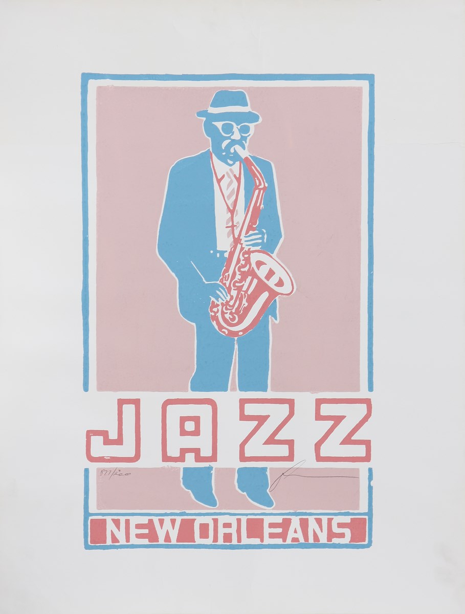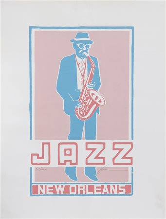 Jazz, New Orleans. Litografia. Cm 51,00 x 68,00. Misure lastra: 31x51cm. Tir.811/2000 e firma in basso.