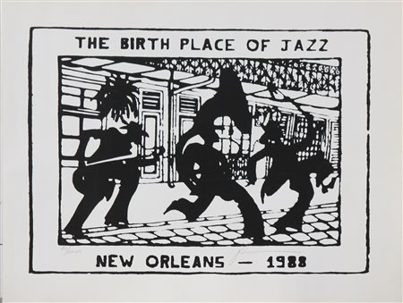 New Orleans, 1988. Litografia. Cm 51,00 x 68,00. Misure lastra: 40x56cm. Tir. 803/2000 e firma in basso.