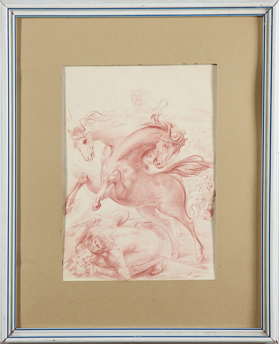 SASSU ALIGI (1912 - 2000) La morte di Patroclo. Litografia. Cm 20,00 x 28,70. Firma in basso a destra. Margine sinistro del foglio tagliato, piccolo strappo sul margine destro. Cornice presente