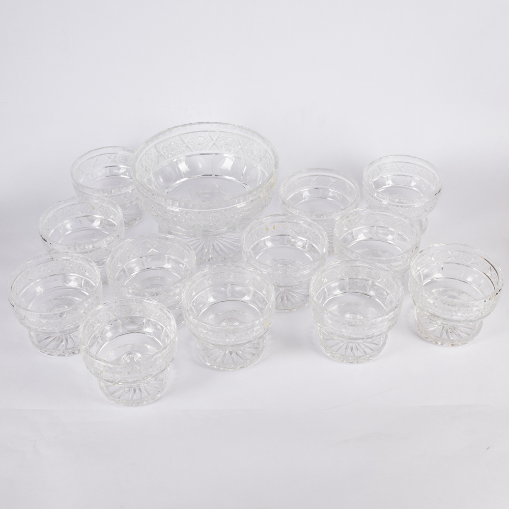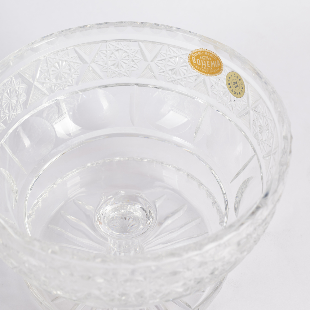 Lotto composto da una alzata e dodici boules in cristallo di Boemia