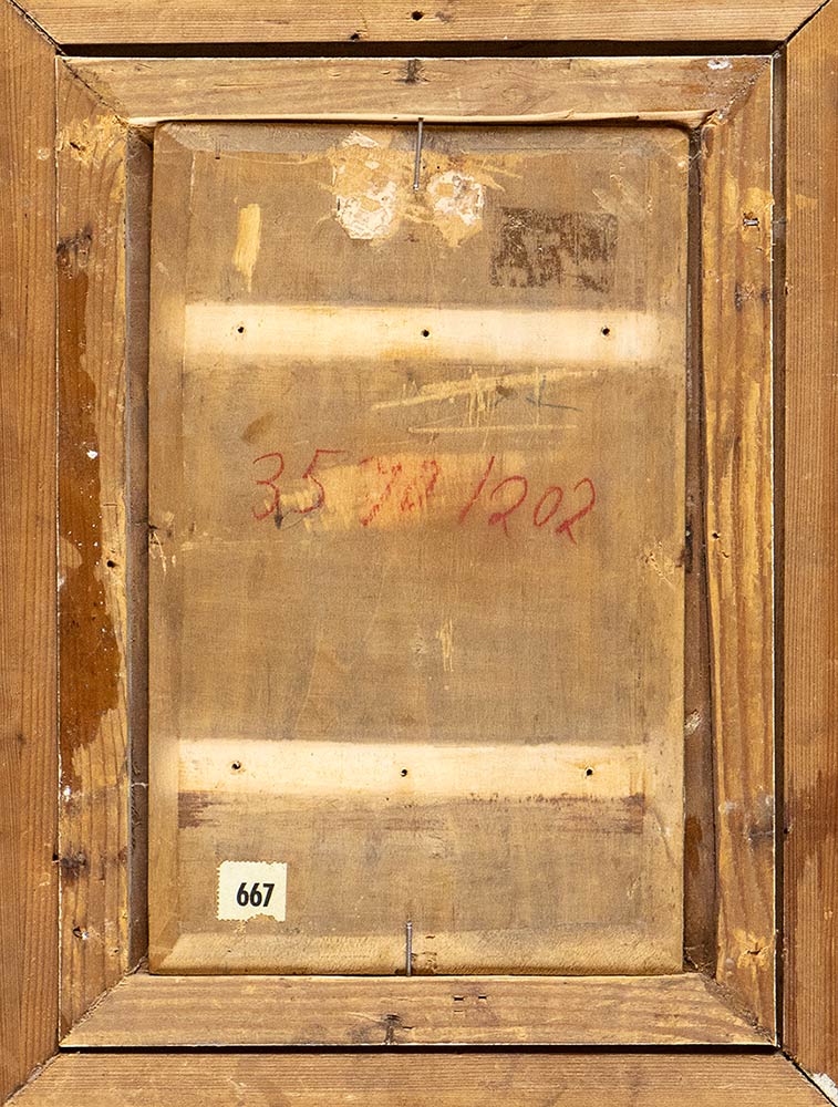 Olio su tavola, cm. 27,5x17,5. Con cornice.