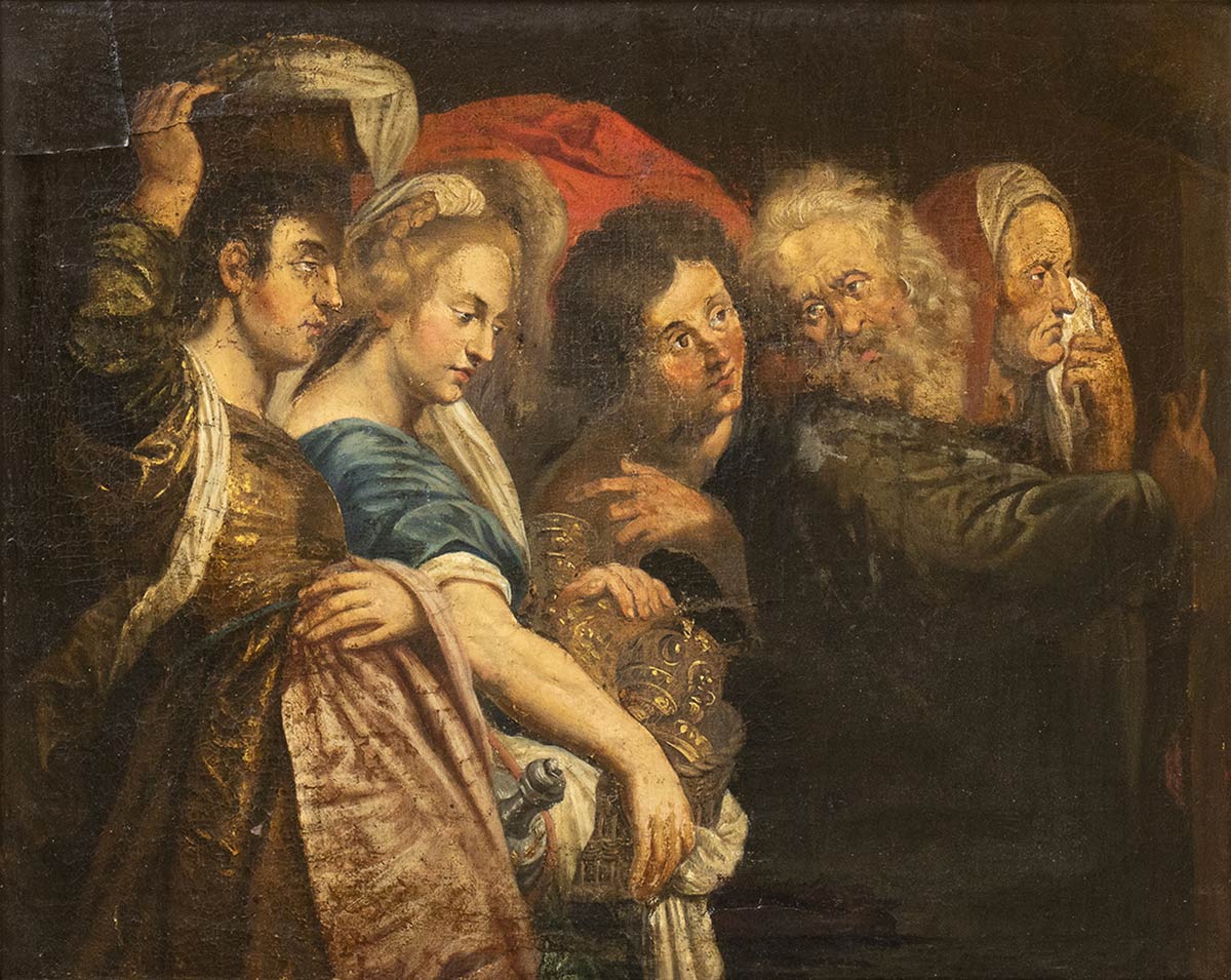 Replica parziale antica del dipinto di Peter Paul Rubens, La fuga di Lot e la sua famiglia da Sodoma, circa 1615, conservato oggi presso il Martin von Wagner Museum e fedelmente tradotto in incisione da Lucas Vorsterman.