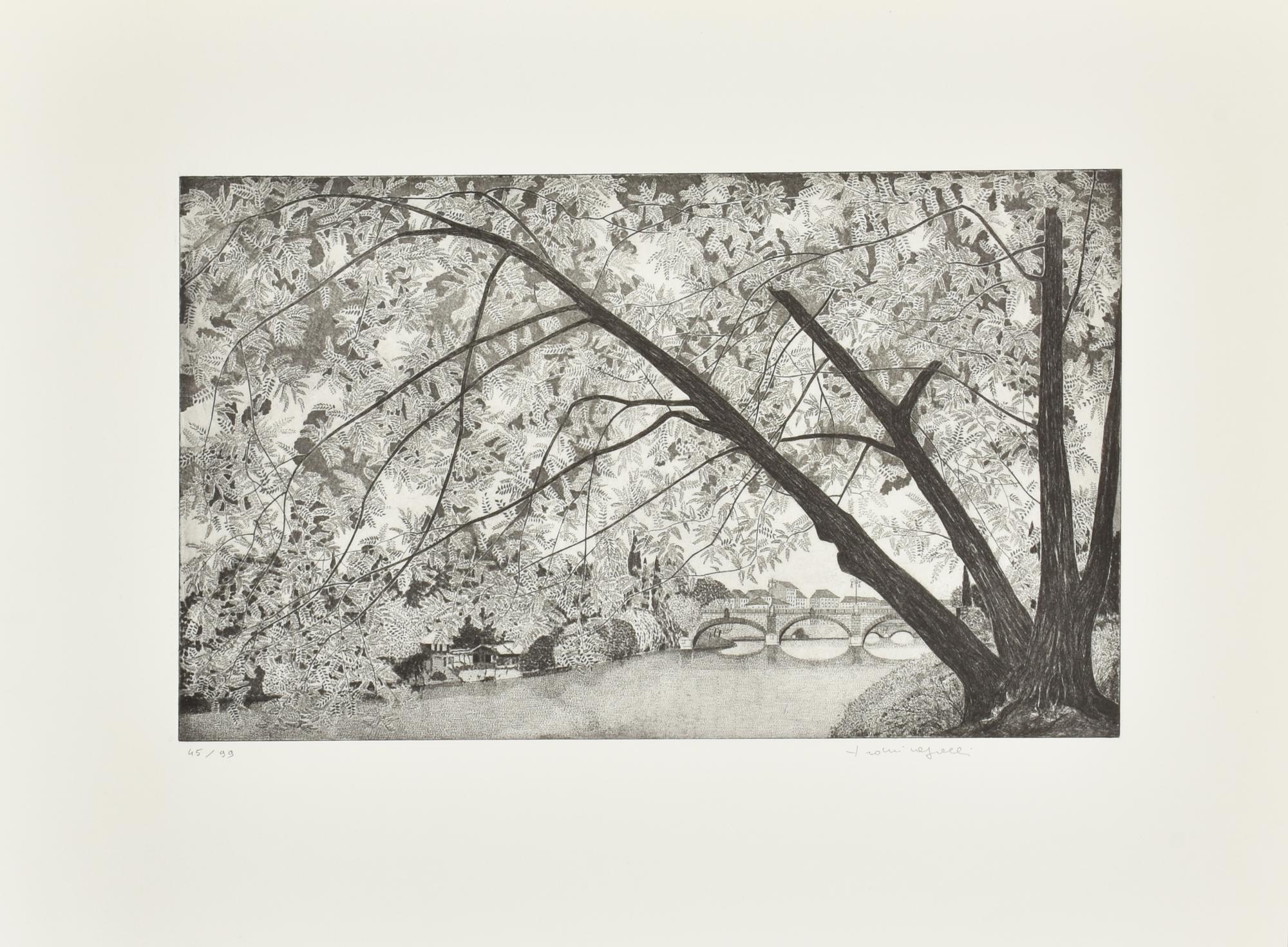 incisione su carta, battuta cm 28x50, foglio cm 70x50; es. 45/99