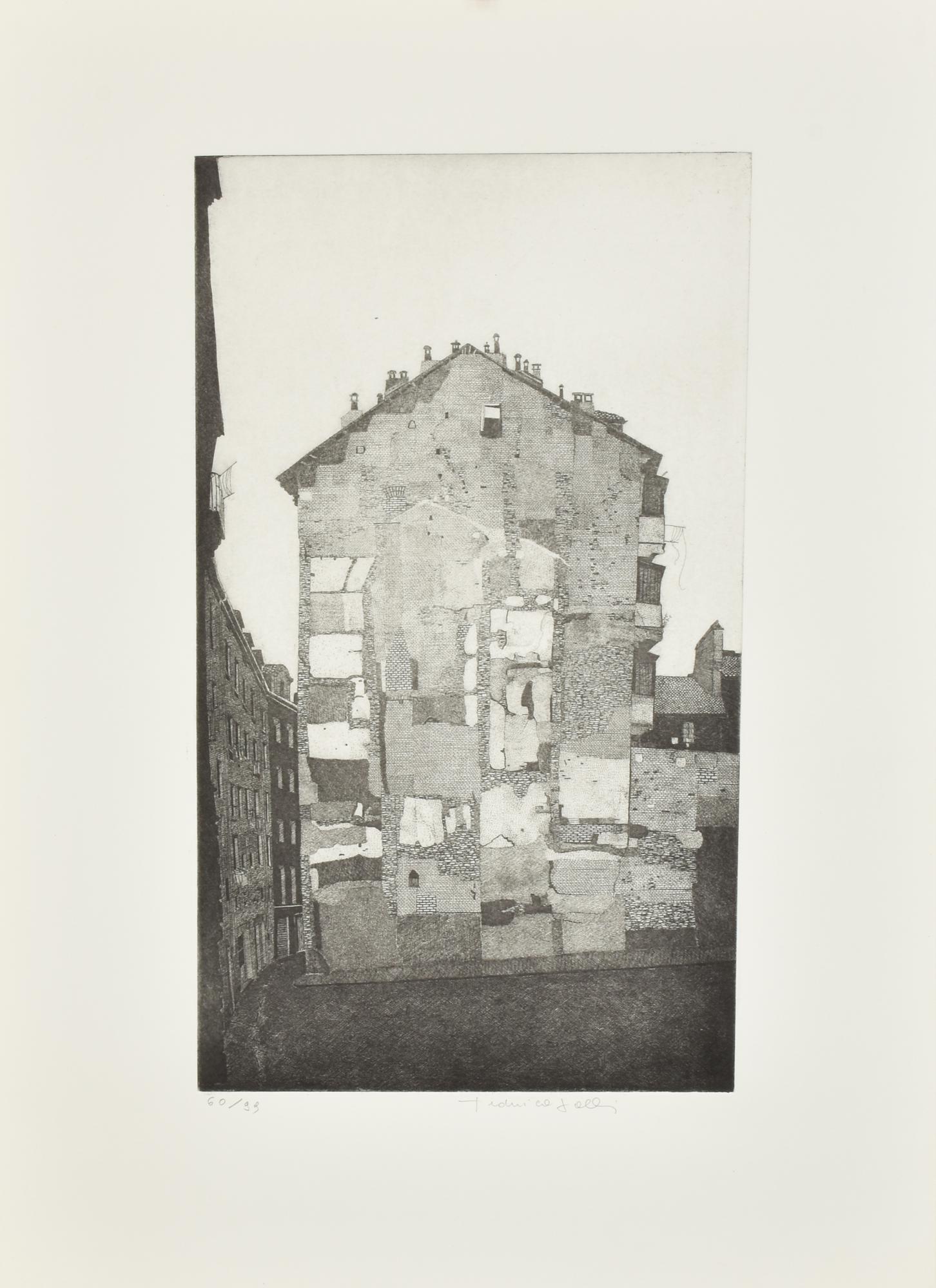 incisione su carta, battuta cm28x50, foglio cm 70x50; es. 60/99
