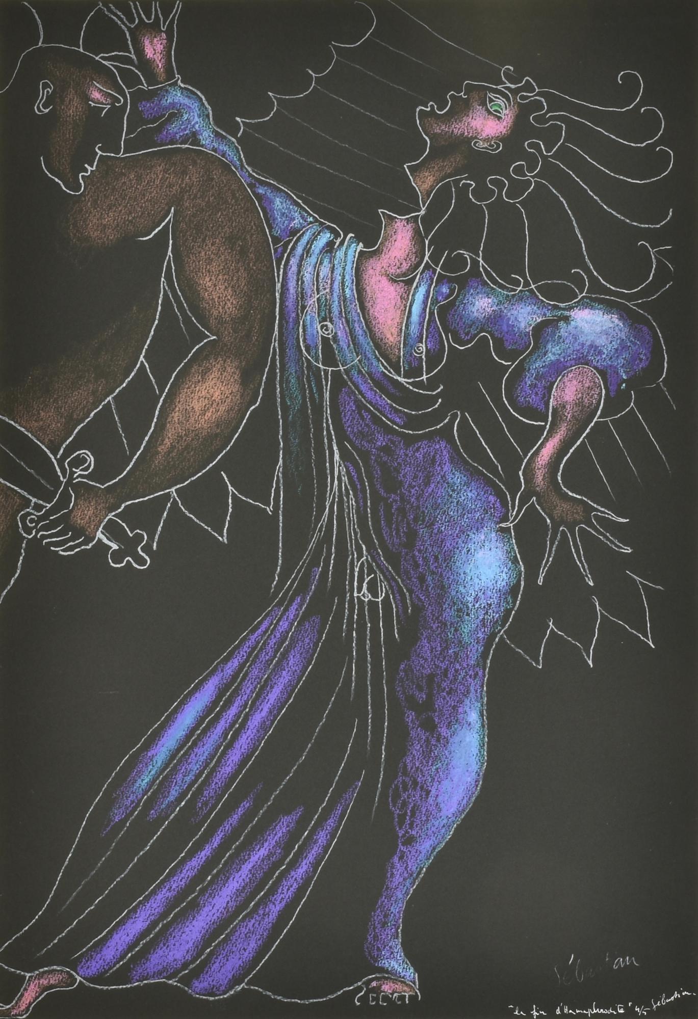Sebastian LA FIN D' HERMAPHRODITE serigrafia su carta ritoccata a mano, cm...