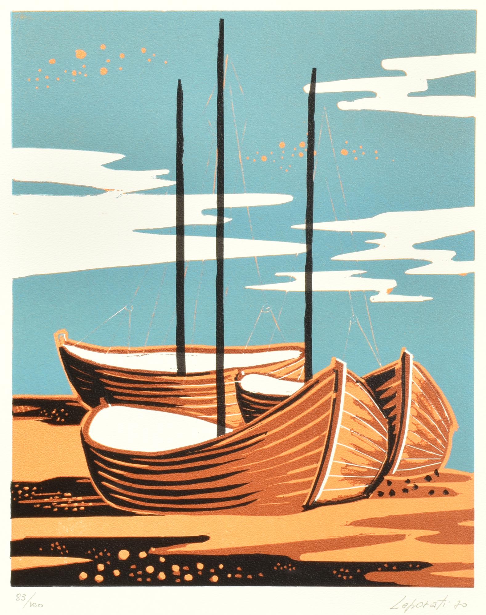 Leporati BARCHE incisione su carta, cm 33,5x26; es. 83/100 firma e data...