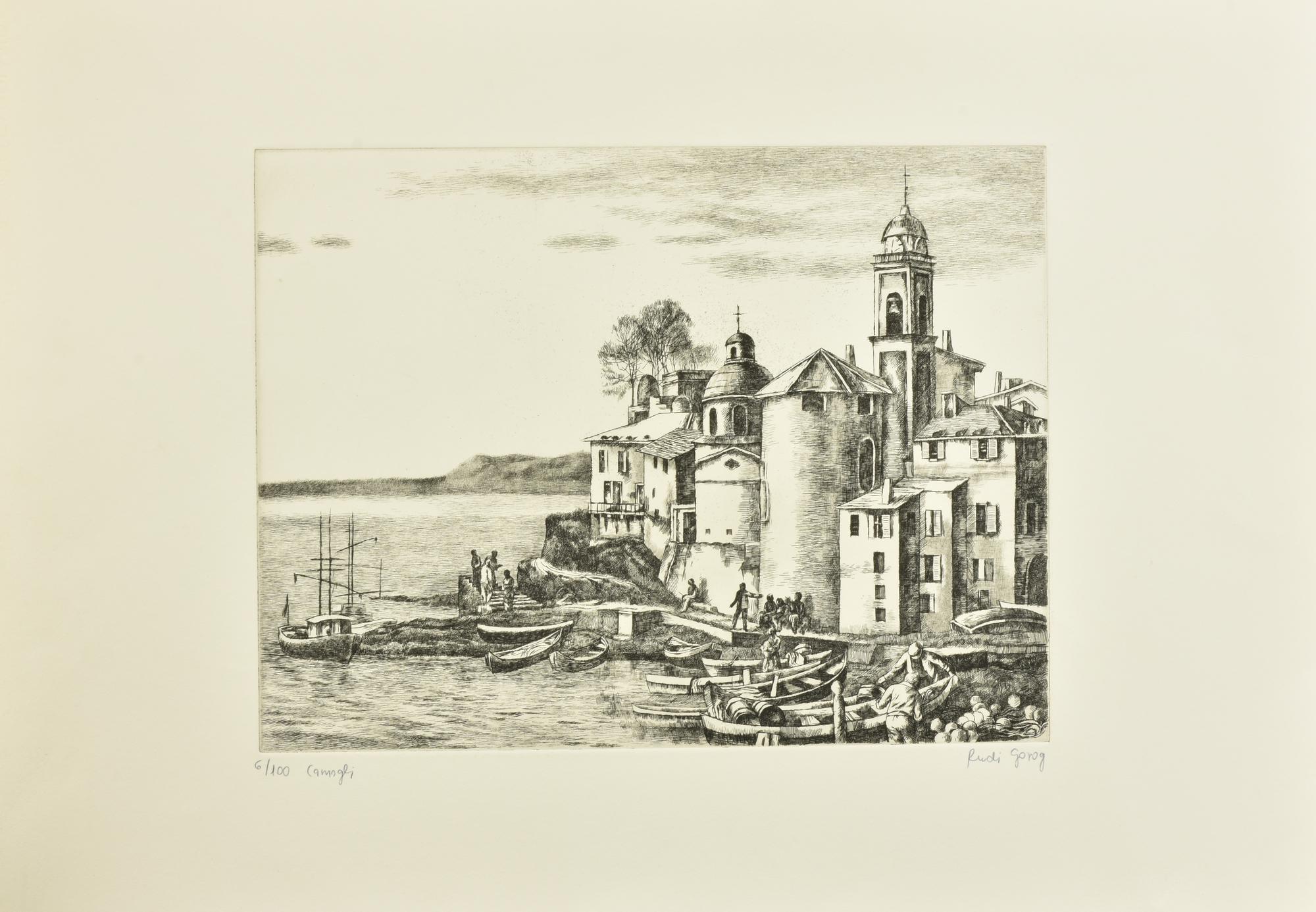 Rudi Gorog CAMOGLI incisione su carta Fabriano, battuta cm 30x39, su foglio...