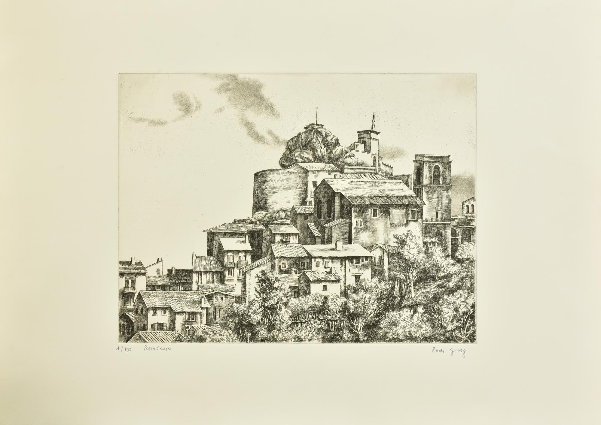 Rudi Gorog ROCCA SICURA incisione su carta, battuta cm 30x39,5, su foglio cm...