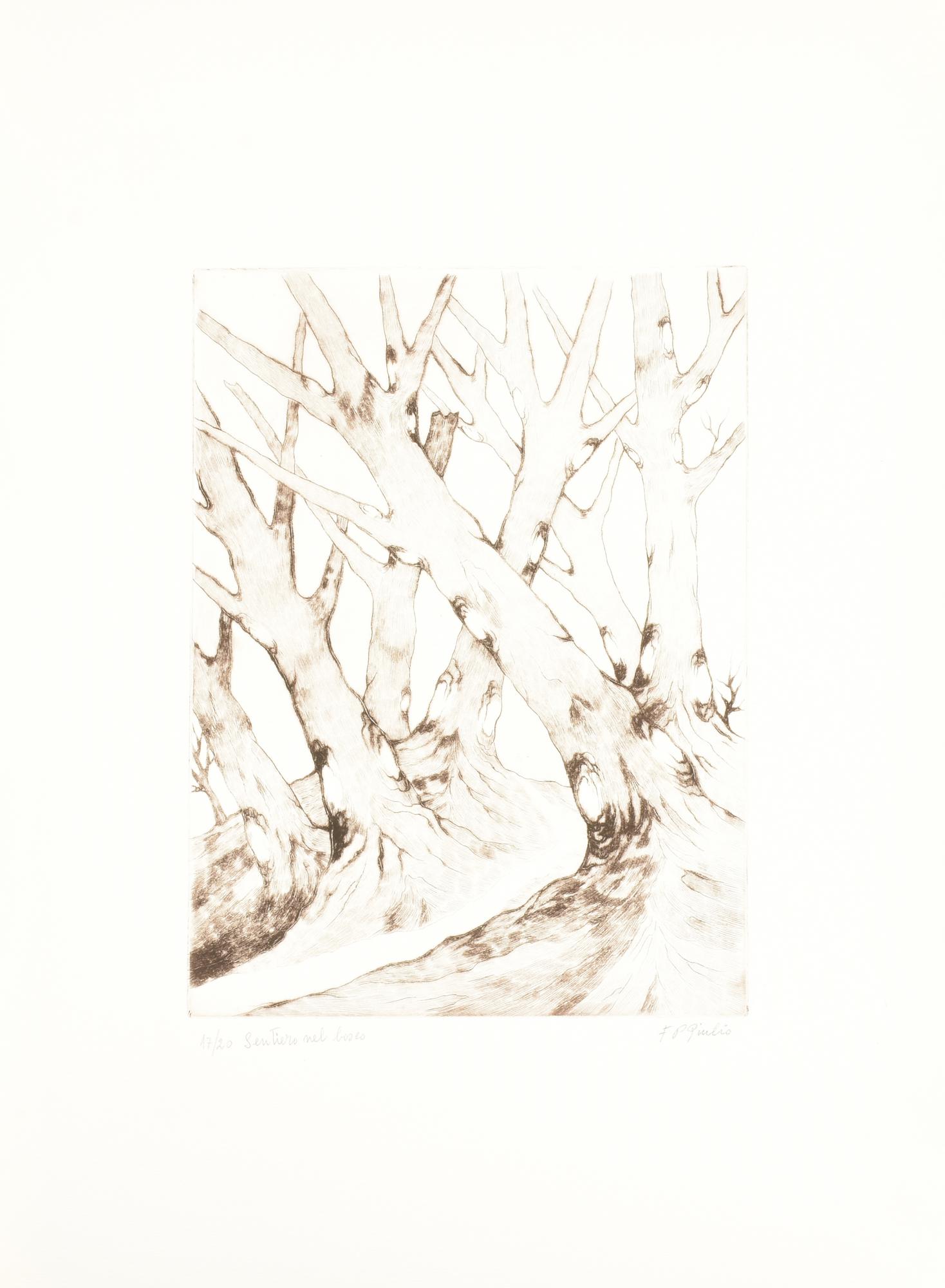F. P. Giulio SENTIERI NEL BOSCO incisione su carta, battuta cm 27x20, su...