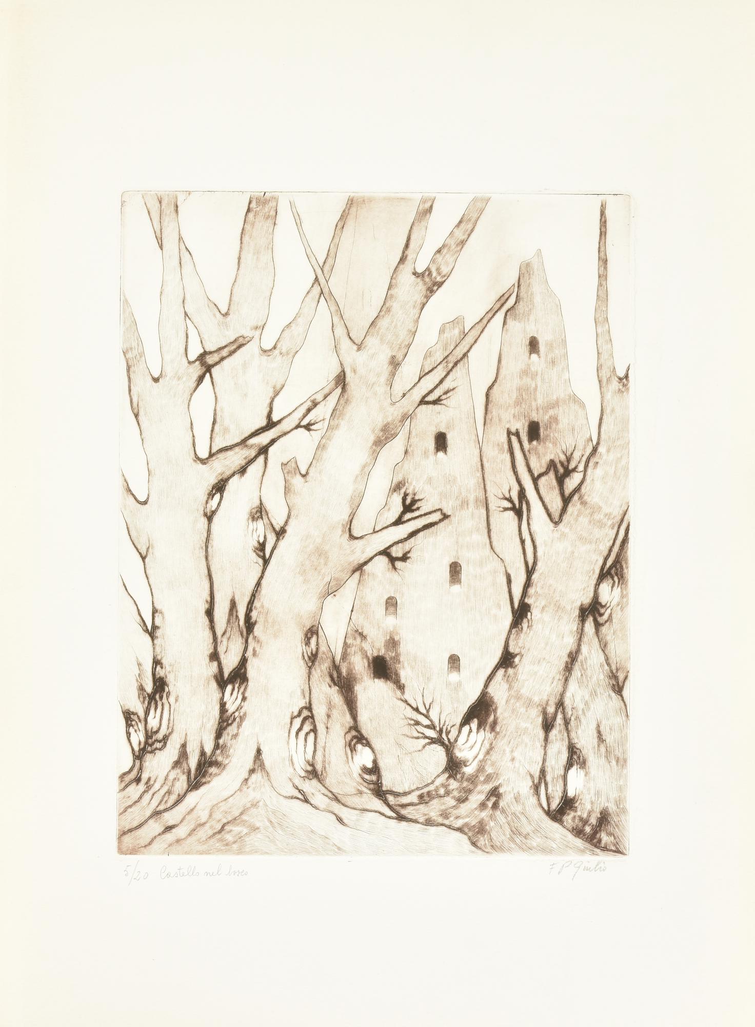 F. P. Giulio CASTELLO NEL BOSCO incisione su carta, battuta cm 30x23, su...