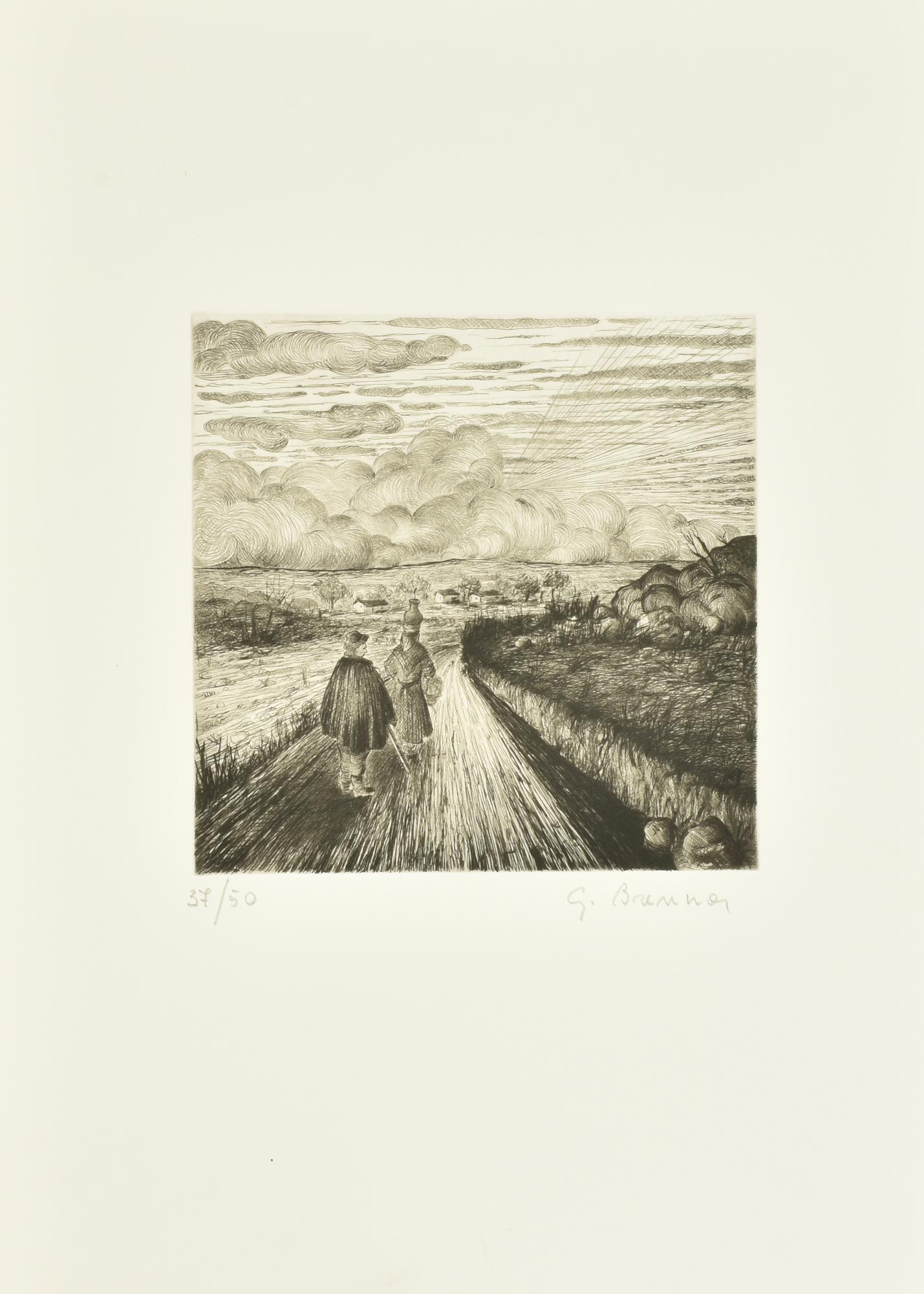 G. Brenna SULLA VIA DEL RITORNO incisione su carta, battuta cm 19x19, su...