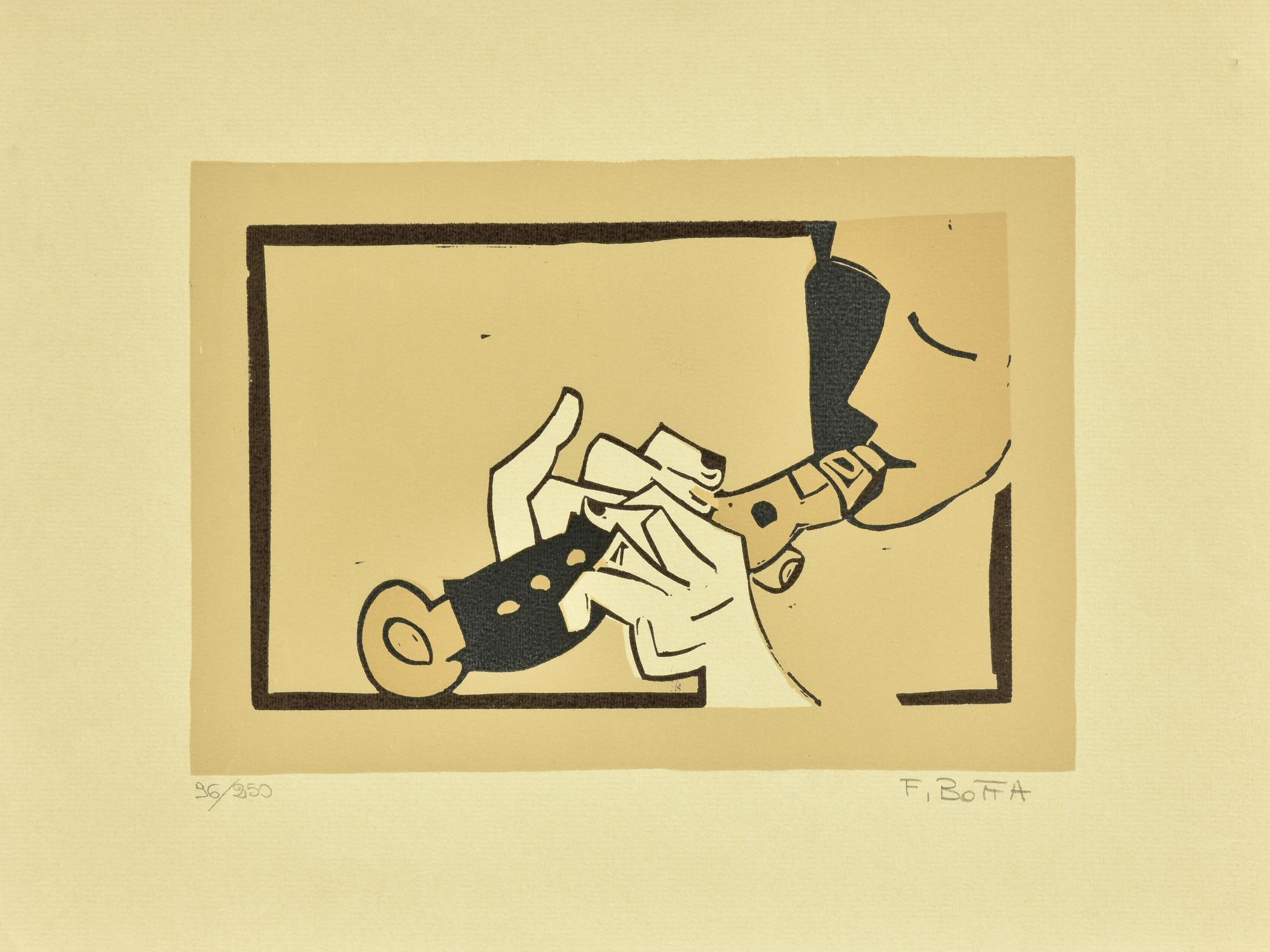 Felice Botta FLAUTO DOLCE IN DO linoleumgrafia su carta, cm 25x34,5; es....