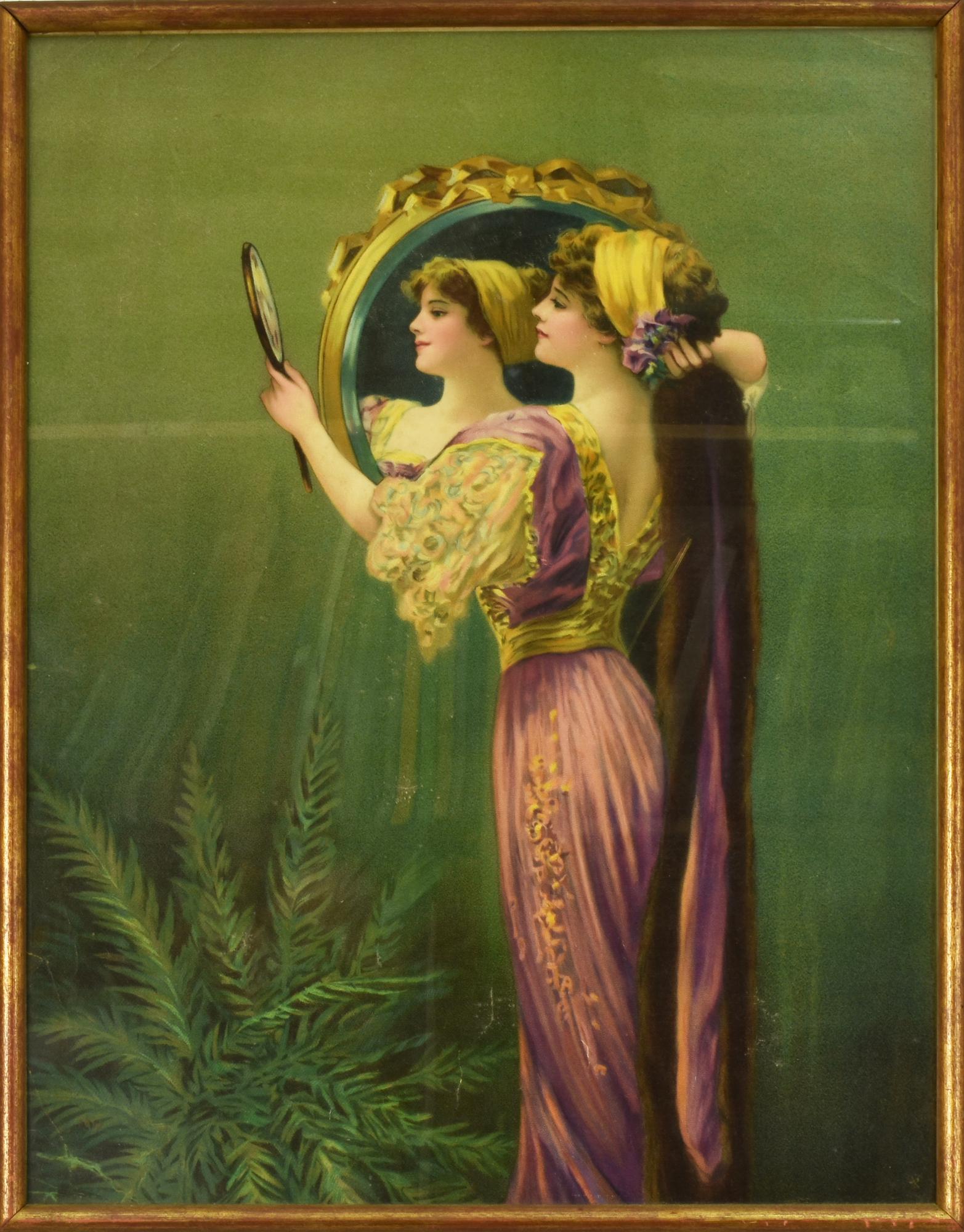 Anonimo DONNA CHE SI SPECCHIA stampa su tela, cm 50x40