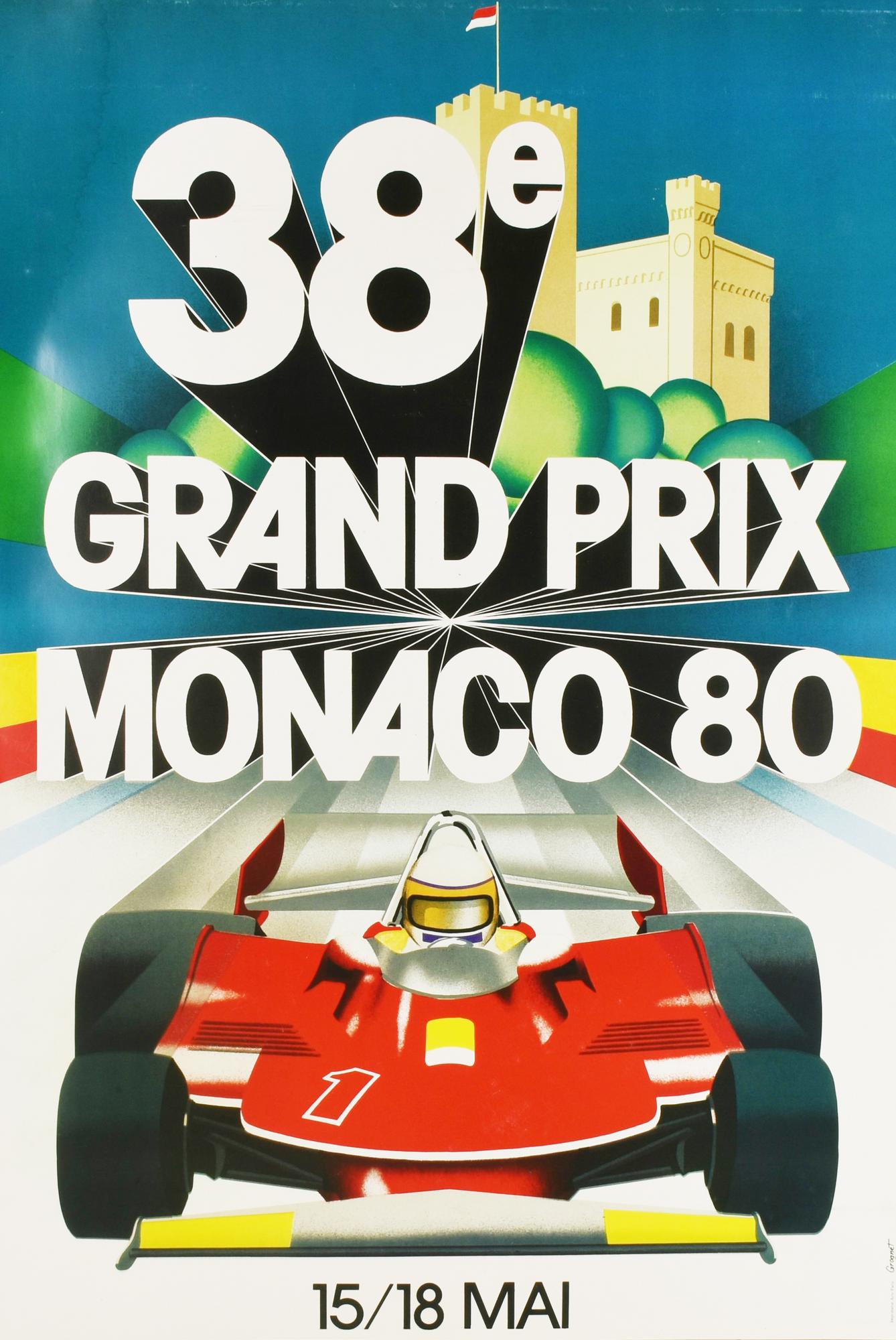 38eme GRAND PRIX MONACO 80 manifesto litografico su carta, cm 87,5x60...