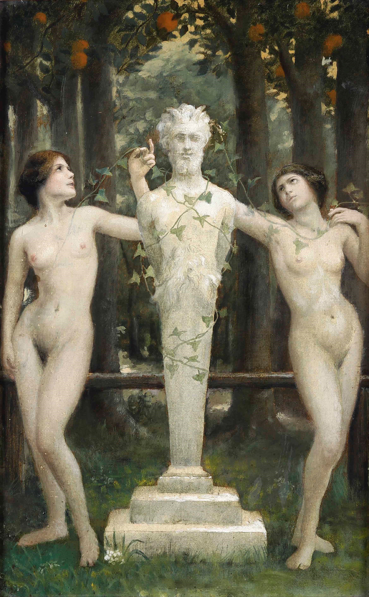 Due nudi femminili con erma di satiro Pittore del XIX secolo