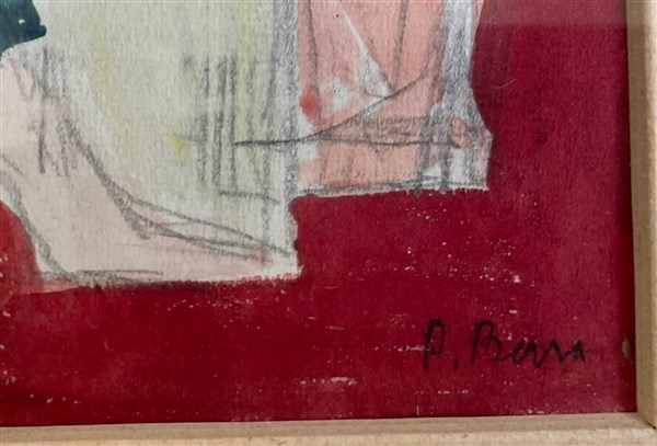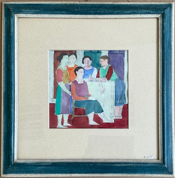 Pompeo Borra "Donne al tavolo" matita e acquerello su carta cm 20,5x21,5 firmat