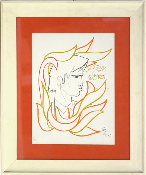 Jean Cocteau "Le buisson ardent (taureaux)" litografia a colori cm 37x27,5 nume