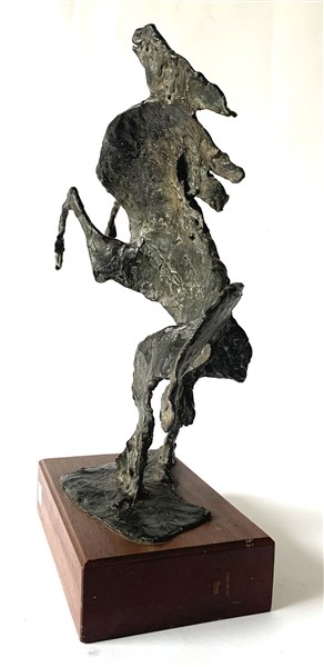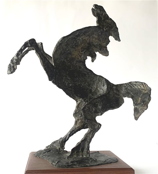 Aligi Sassu "Cavallino impennato" 1983 scultura in bronzo su base in legno cm 35