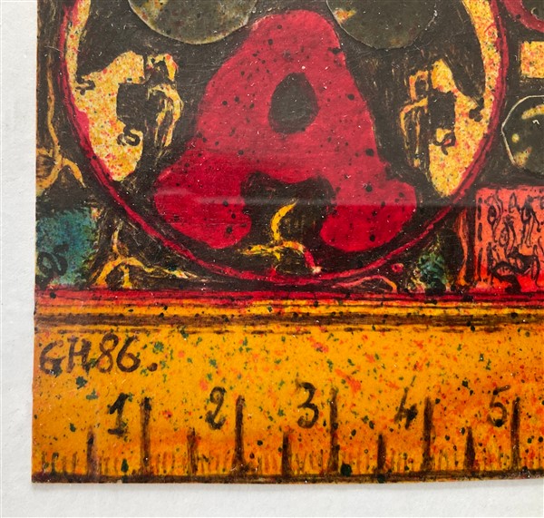 Guy Harloff "Mesure..." 1986 tecnica mista e collage su carta cm 18,5x29,5 sigla