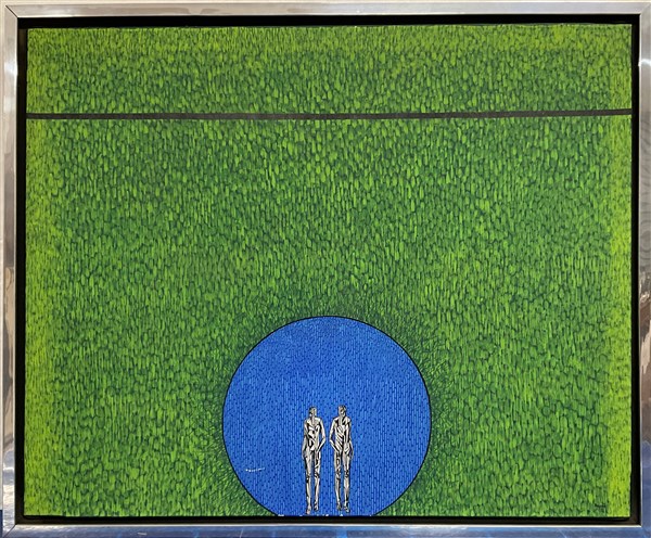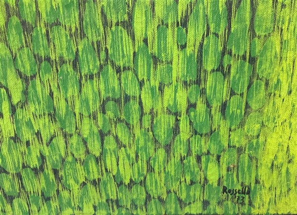 Mario Rossello "Un cerchio azzurro su un prato verde" 1973 acrilico su tela cm 8