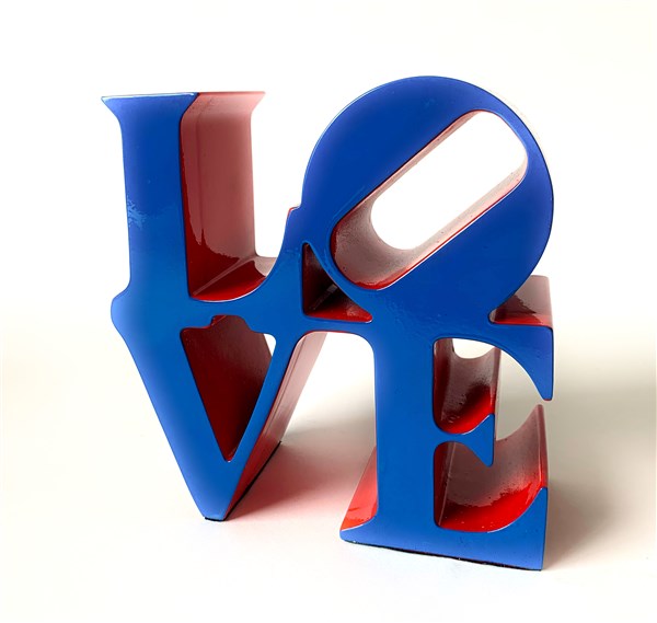 "Love blue" polystone dipinto da un soggetto di Robert Indiana cm 15x15x7 ediz