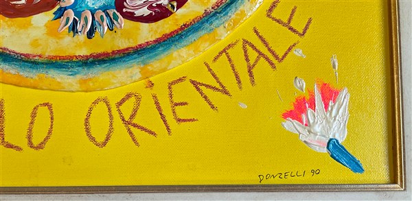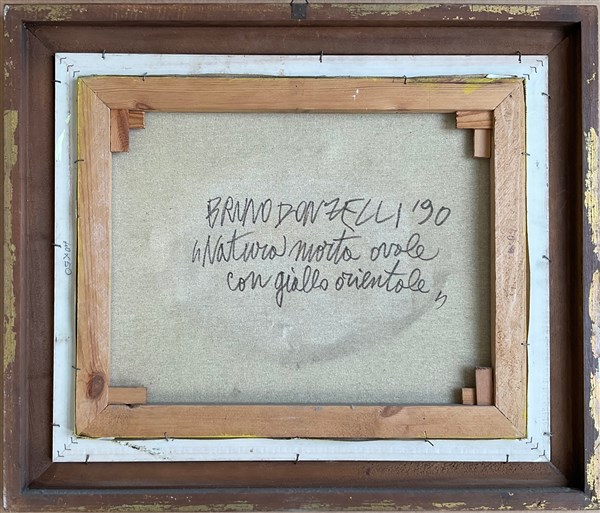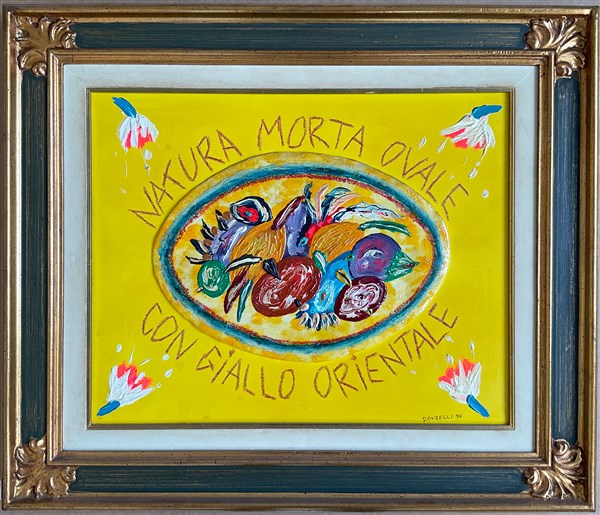 Bruno Donzelli "Natura morta ovale con giallo orientale" 1990 collage e tecnica