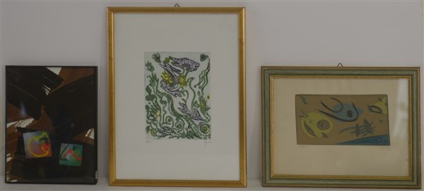 lotto composto di due piccole acqueforti di soggetto e misure diverse (cm 34x24,5 e cm 20x26) e una tecnica mista su carta di Sergio Saad (cm 23,5x17,5)