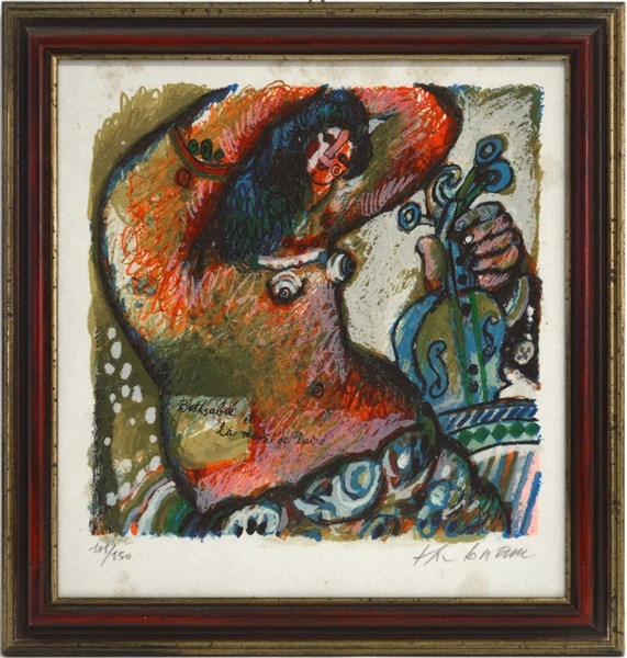 Théo Tobiasse "Bethsabée et la main de David" litografia a colori cm 30,5x29 fi