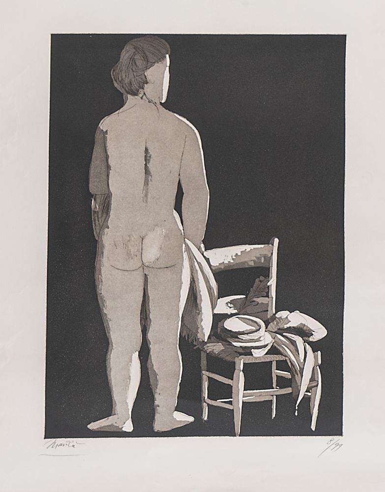 GIACOMO MANZÙ (Bergamo 1908 - Roma 1991) "Modella con seggiola". Litografia...