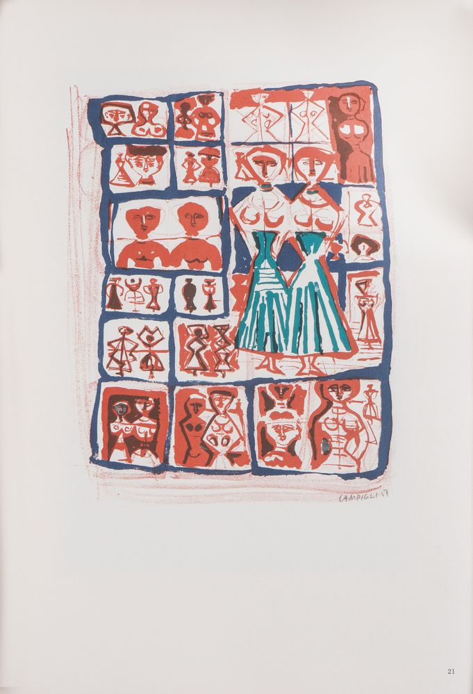 MASSIMO CAMPIGLI (Berlino 1895 - Saint-Tropez 1971) Cartella contenente 100 litografie. Esemplare numero 639 su 1124. Edizione a cura di Alessandro Ronzon per la casa editrice Sansoni, Firenze, 1965. Foglio: ciascuno cm 48x34. Lastre di misure variabili.