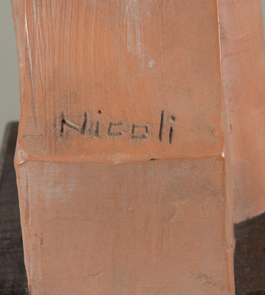 CLAUDIO NICOLI (San Giovanni in Persiceto 1958) "Senza titolo". Scultura in terracotta. Senza basamento: cm 47,5x10,5x18. Opera firmata al retro Nicoli.