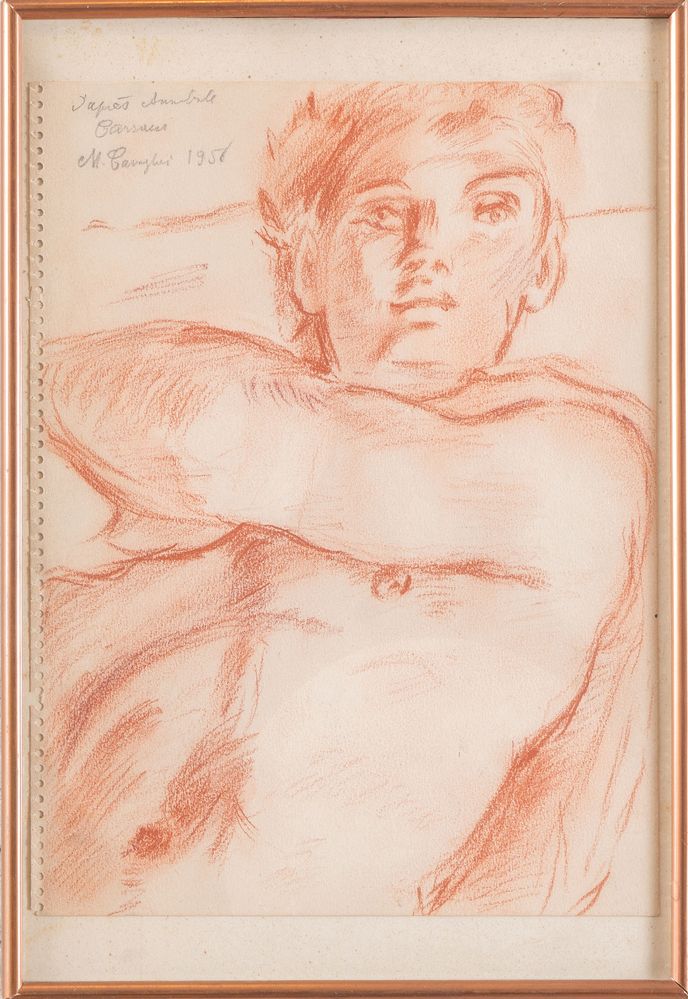 MARIO CAVAGLIERI (Rovigo 1887 - Pavie 1969) "Busto maschile". Disegno su carta. Cm 27x20,5. Opera firmata e datata in alto a sinistra M. Cavaglieri 1958.