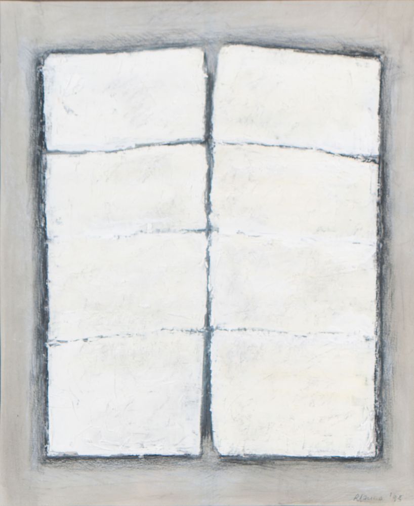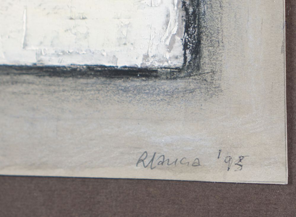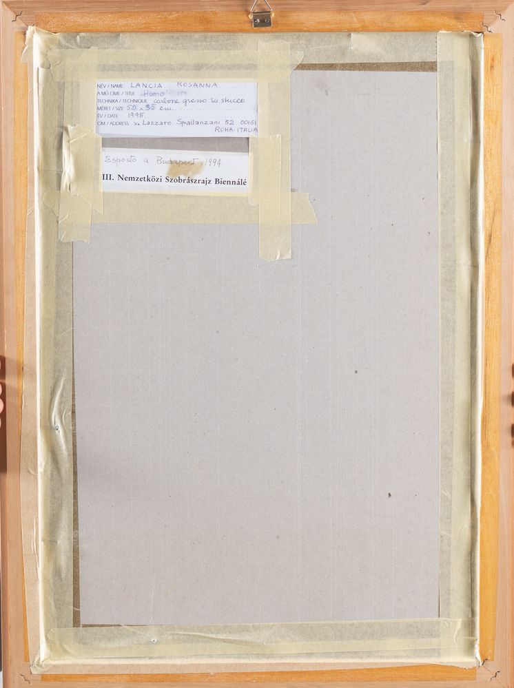 ROSANNA LANCIA (Roma 1925) "Homo", 1993. Carbone grasso e matita su stucco. Cm 29x35, su supporto cm 35x50. Opera firmata e datata in basso a destra R. Lancia '93. Al retro reca etichetta dell'autrice e della mostra III Nemzetkozi Szobraszrajz Biennale, Budapest, 1994.