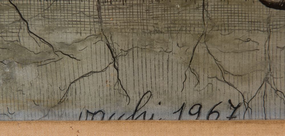 SERGIO VACCHI (Castenaso 1925 - Siena 2016) "Senza titolo", 1967. Tecnica mista su cartoncino. Cm 47x66. Opera firmata e datata in basso a sinistra Vacchi 1967.