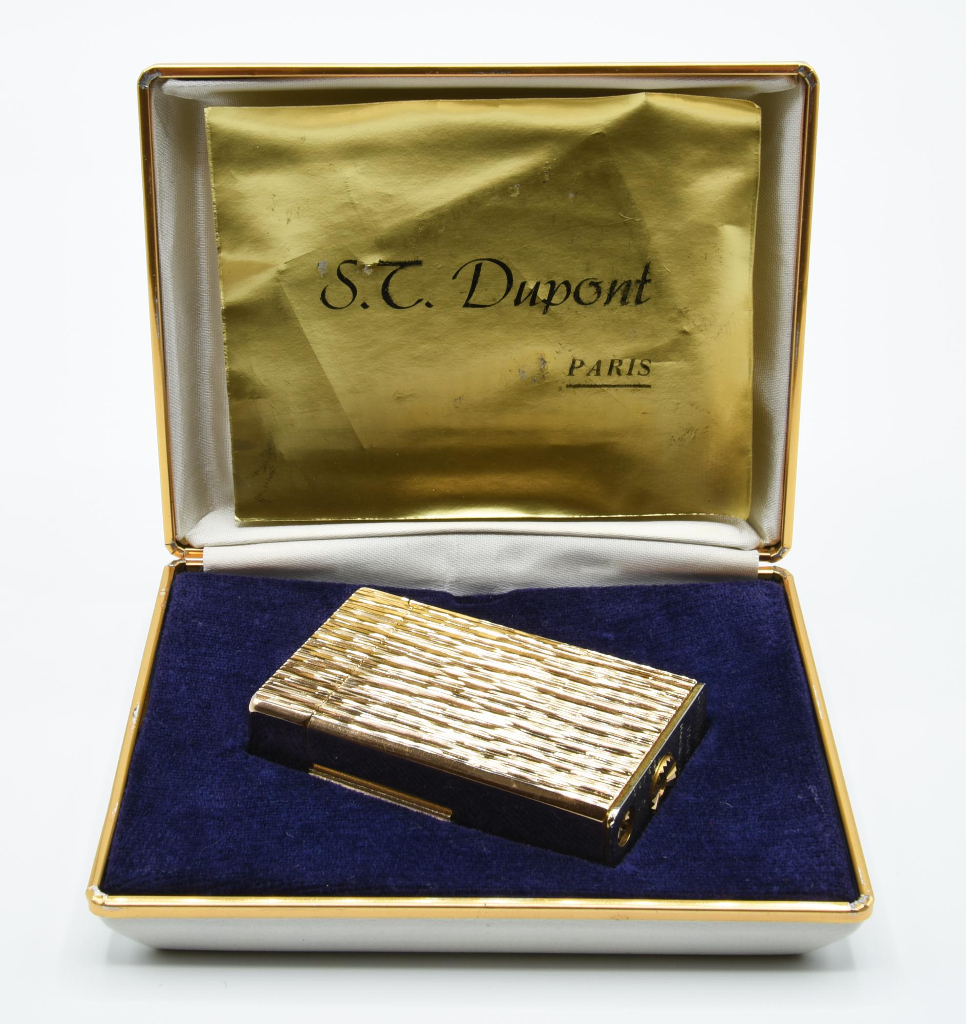 ACCENDINO DUPONT in metallo placcato oro, completo di scatola