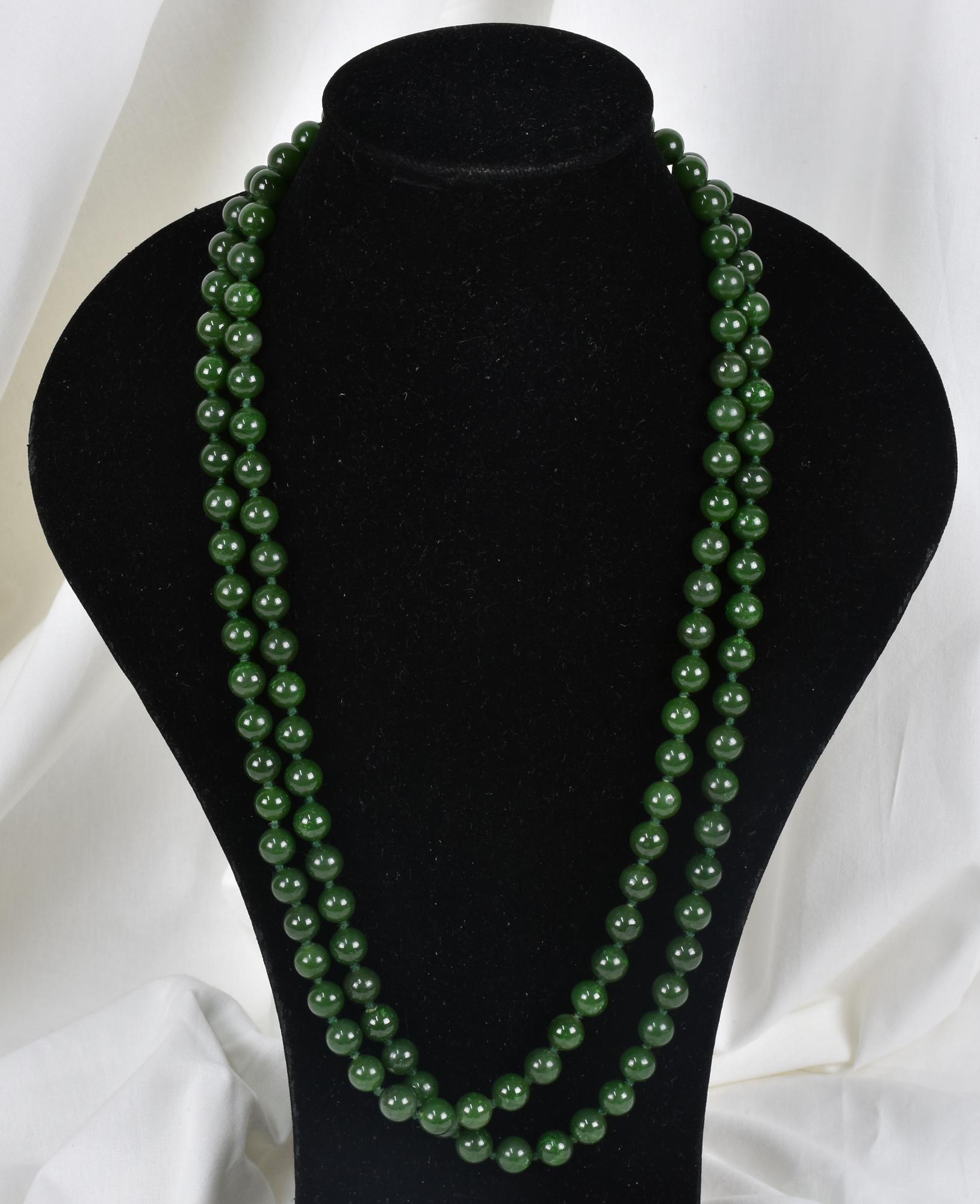COLLANA IN GIADA con fermezza in argento dorato, lunghezza cm 140, diametro...