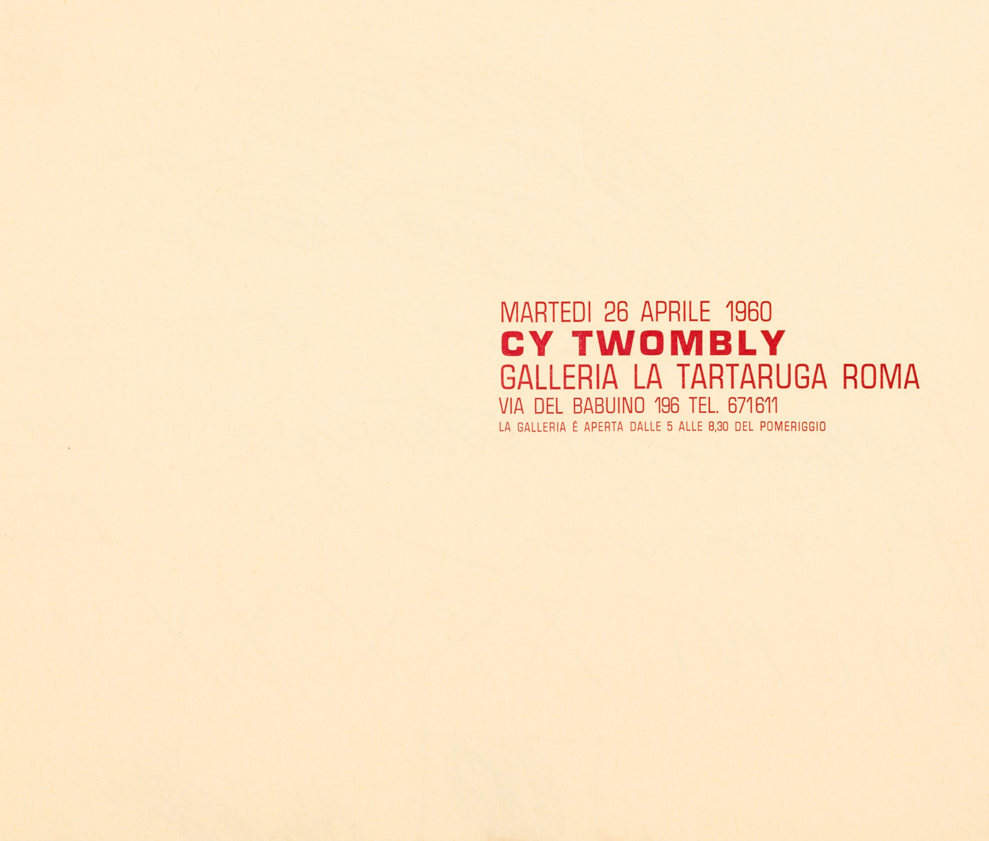 Cy Twombly (Lexington 1928-Roma 2011) - galleria La Tartaruga, 1960