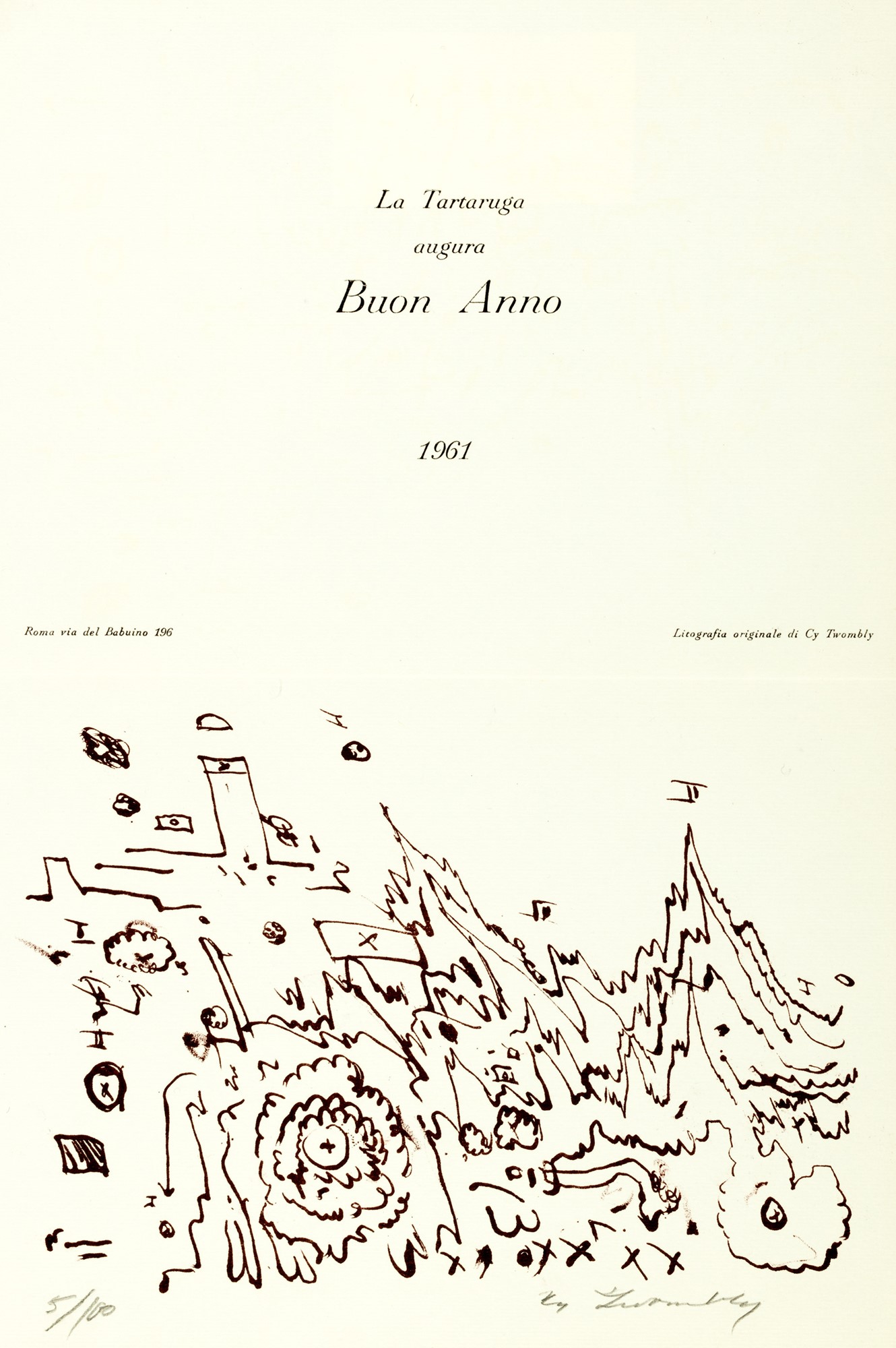 Cy Twombly (Lexington 1928-Roma 2011) - Biglietto di auguri - Galleria La Tartaruga, Roma, 1961