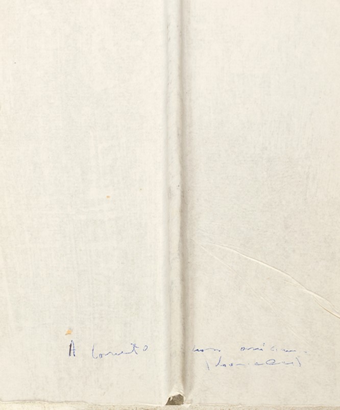 Firma a penna in basso a destra con la dedica: A Loreto con amicizia Kounellis